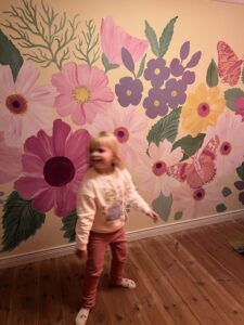 muralmålning med fjärilar och blommor målad av Pernilla Wetzel