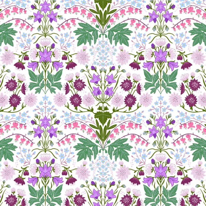 Jag älskar blommor och växter så oftast hamnar de i mina mönster, men jag illustrerar ockå gärna djur och föremål så egentligen finns inga begränsningar för vilken typ av mönster jag kan ta fram för olika ändamål. Har du en idé, hör av dig, så skissar jag upp något som vi kan jobba vidare kring.