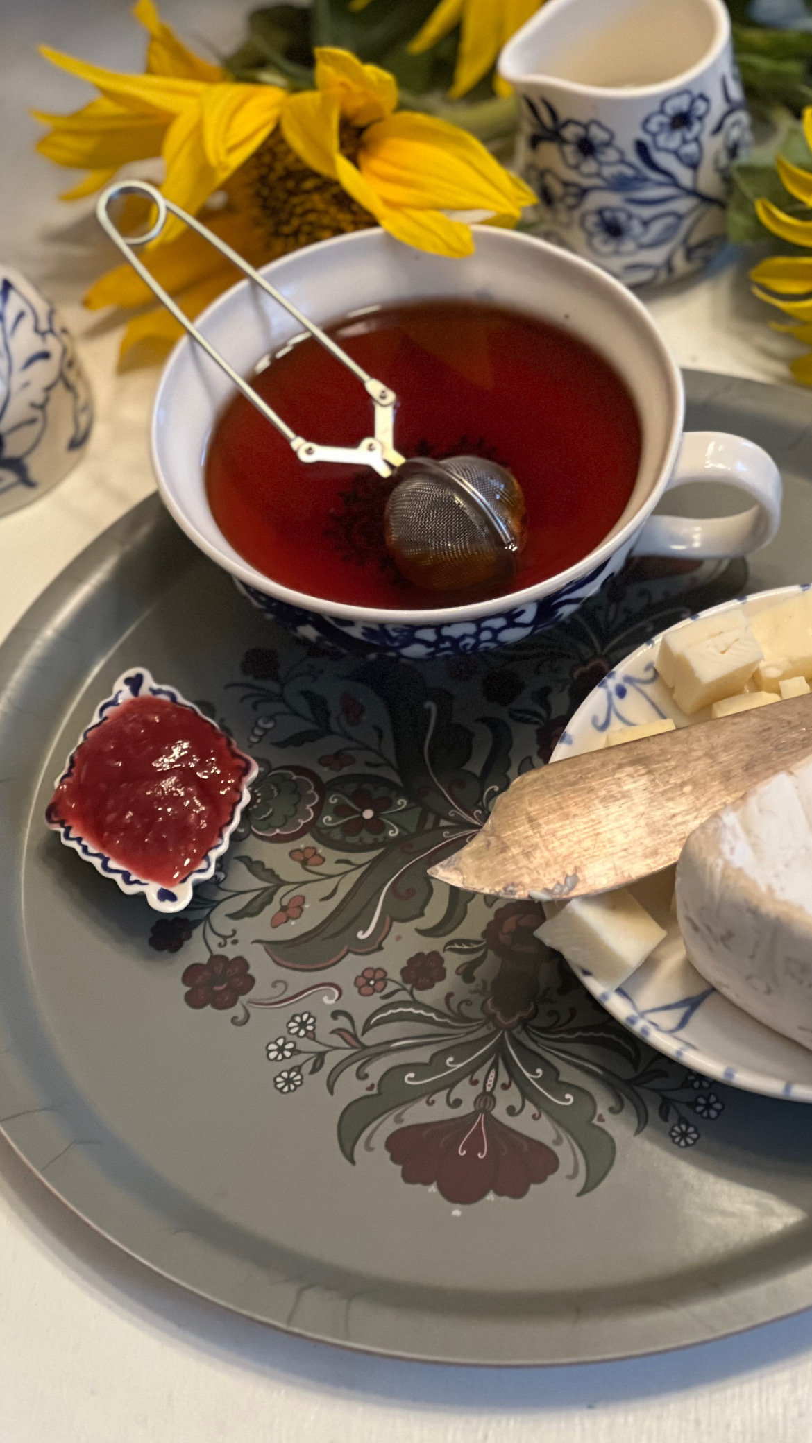 Vacker grön bricka med ett härligt kurbitsmönster med en riktigt julig känsla i gröna och djupt röda toner. Denna bricka passar perfekt till hösten och vinterns fikor tillika att använda som glöggbricka eller för att samla kökets attiraljer på i en fin grupp. Storleken på 31 cm i diameter gör den perfekt att använda även som tårtfat. Vacker också som inredningsdetalj lutad mot kökskaklet tillsammans med skärbrädor, krukor eller andra inredningsdetaljer.