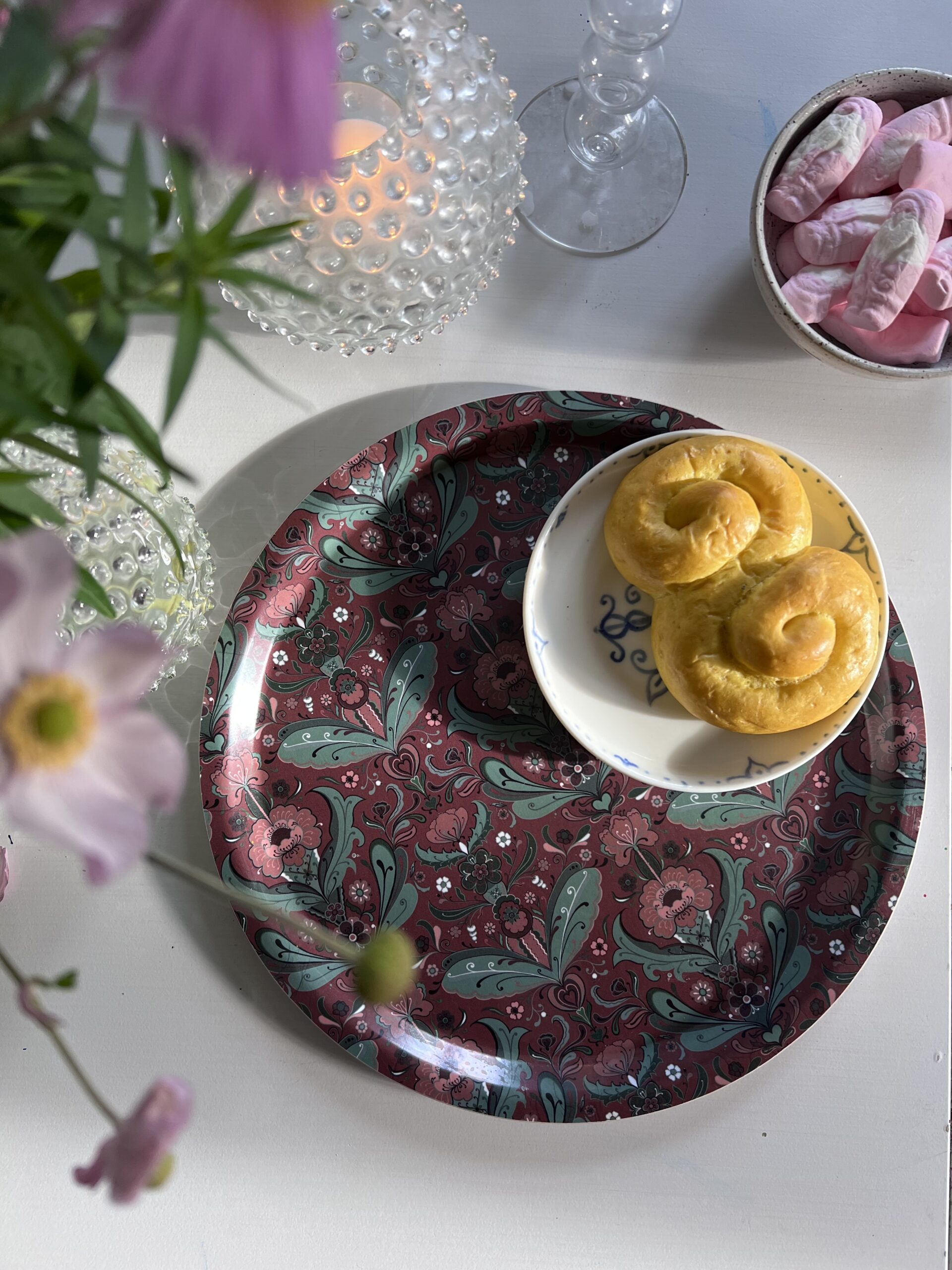 Bricka röd med kurbits