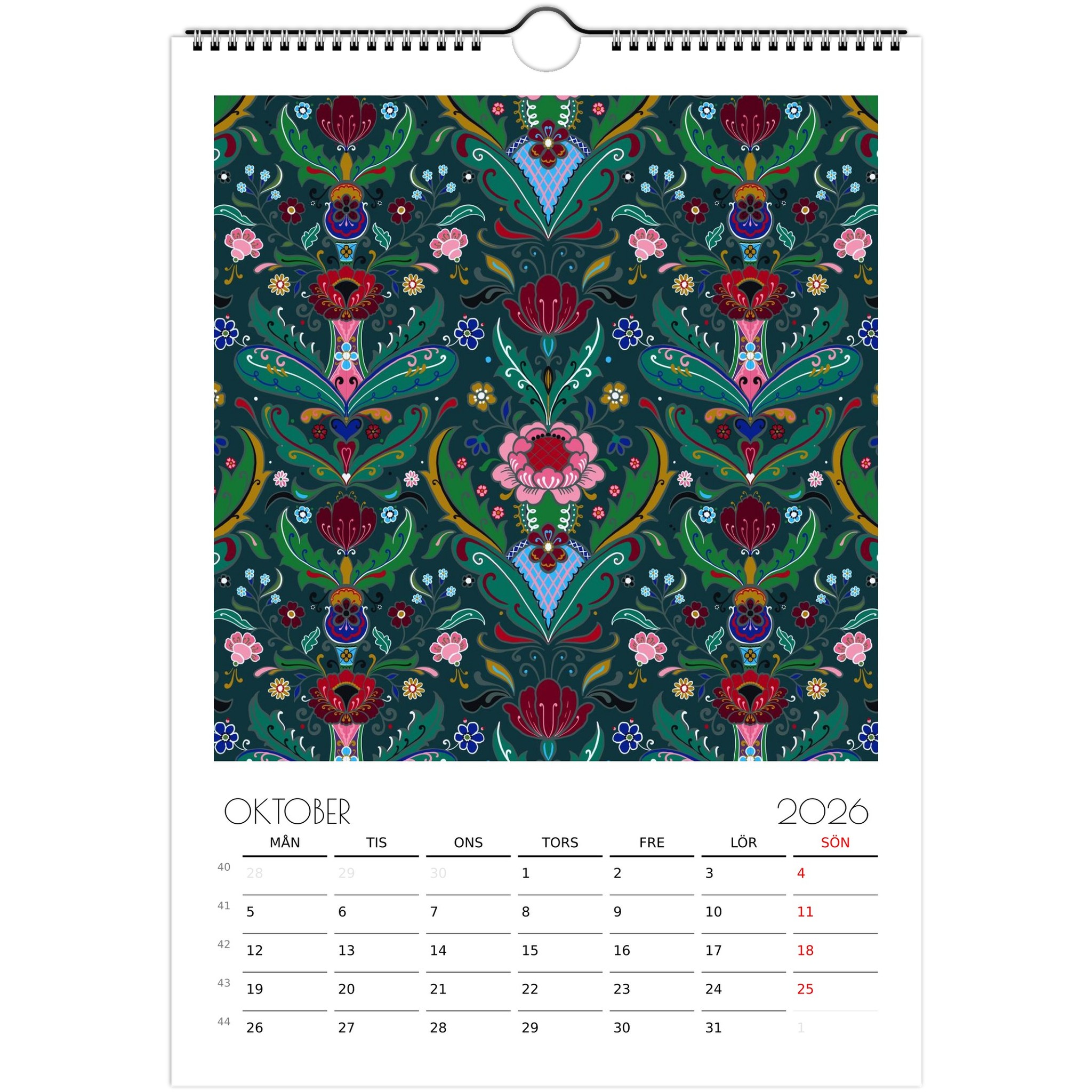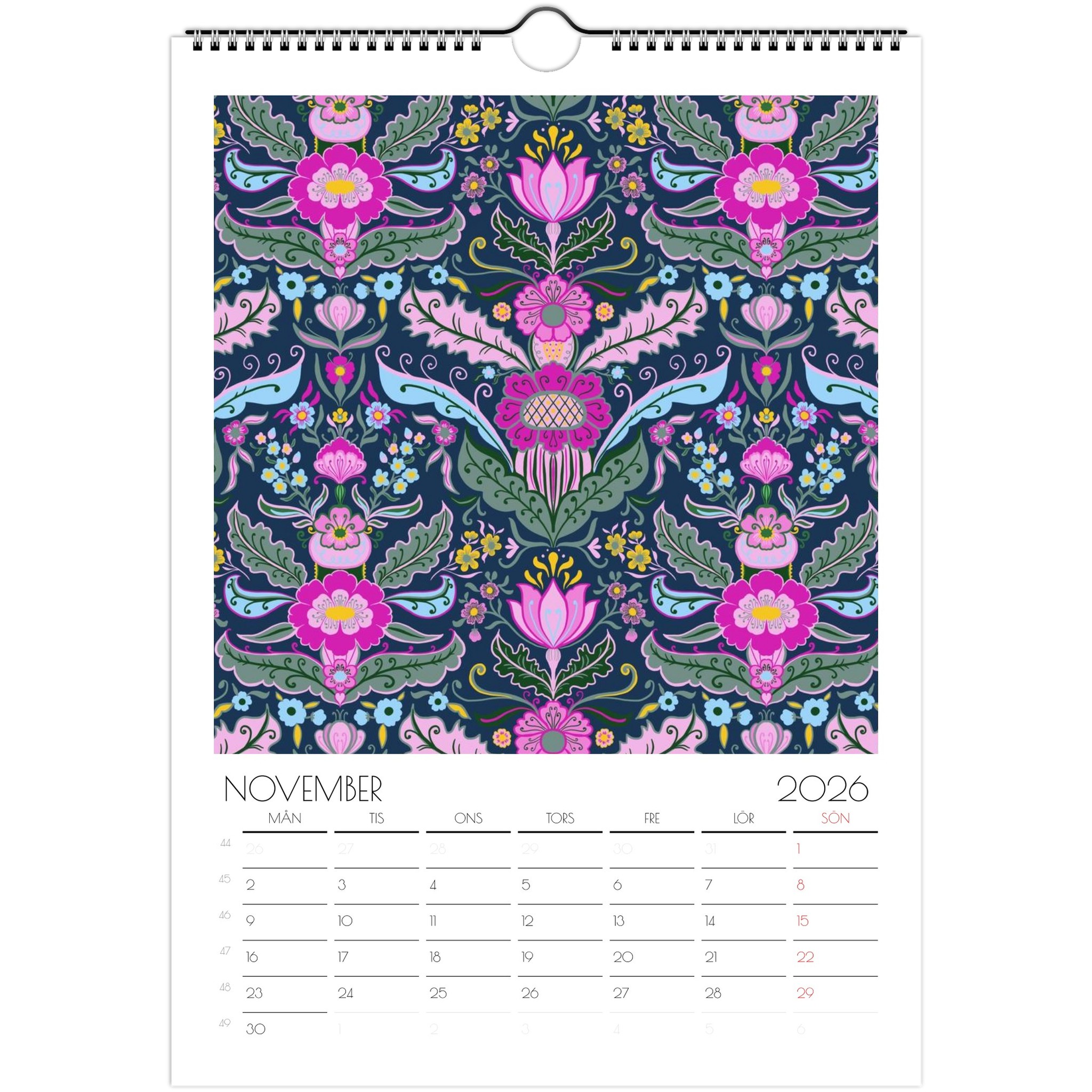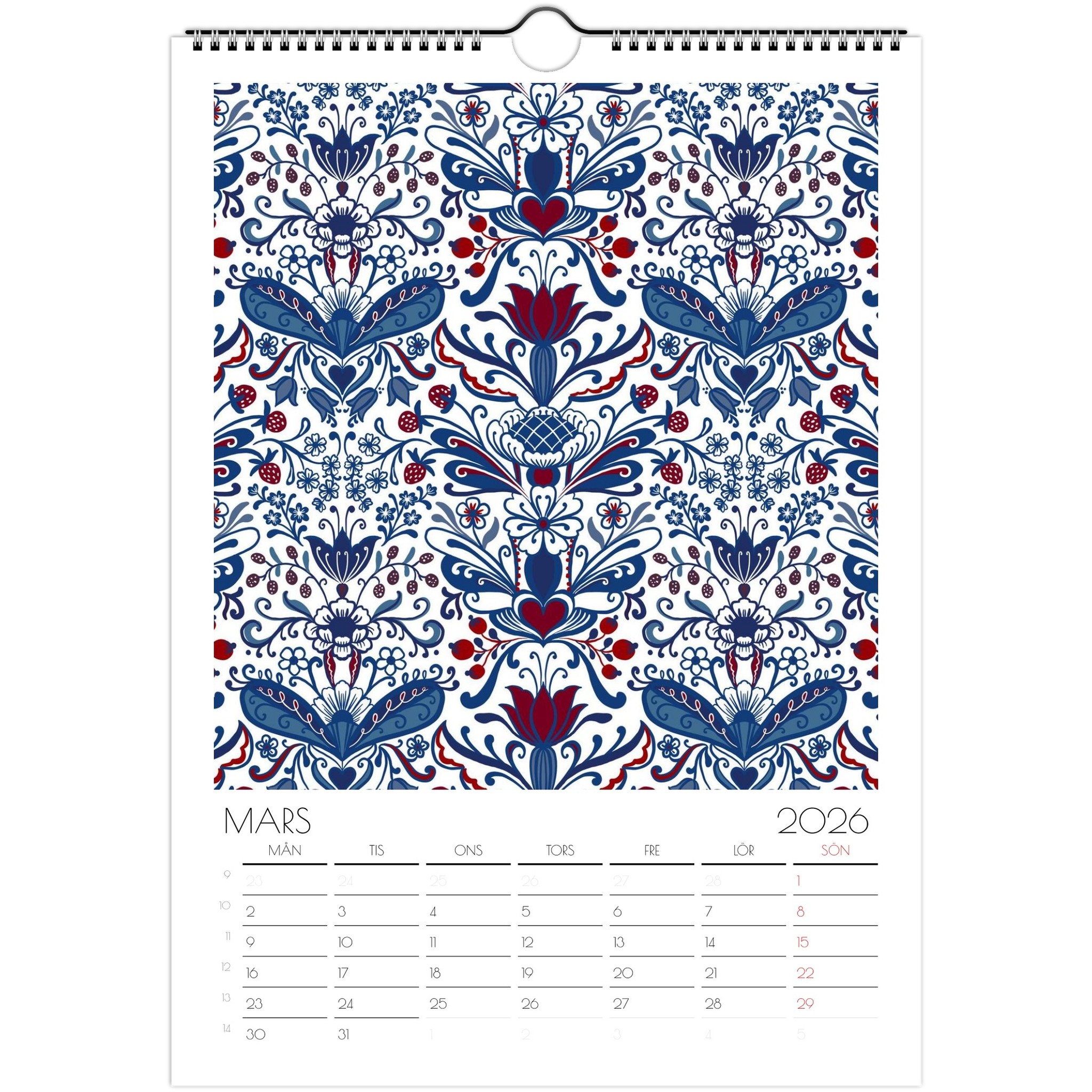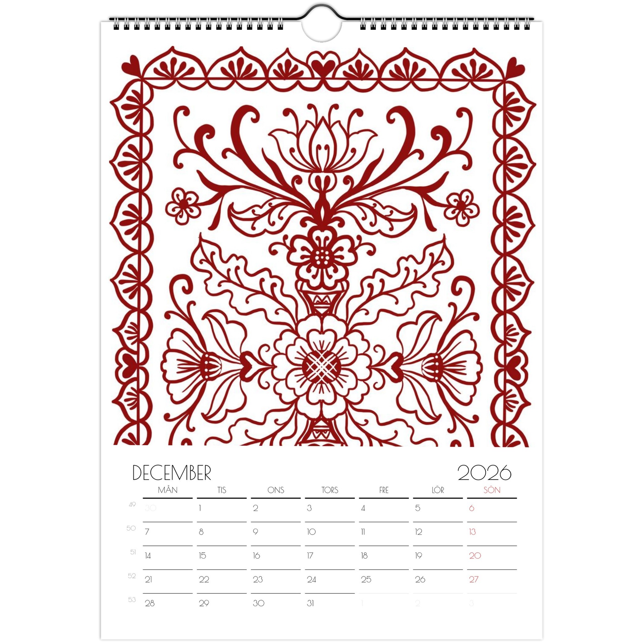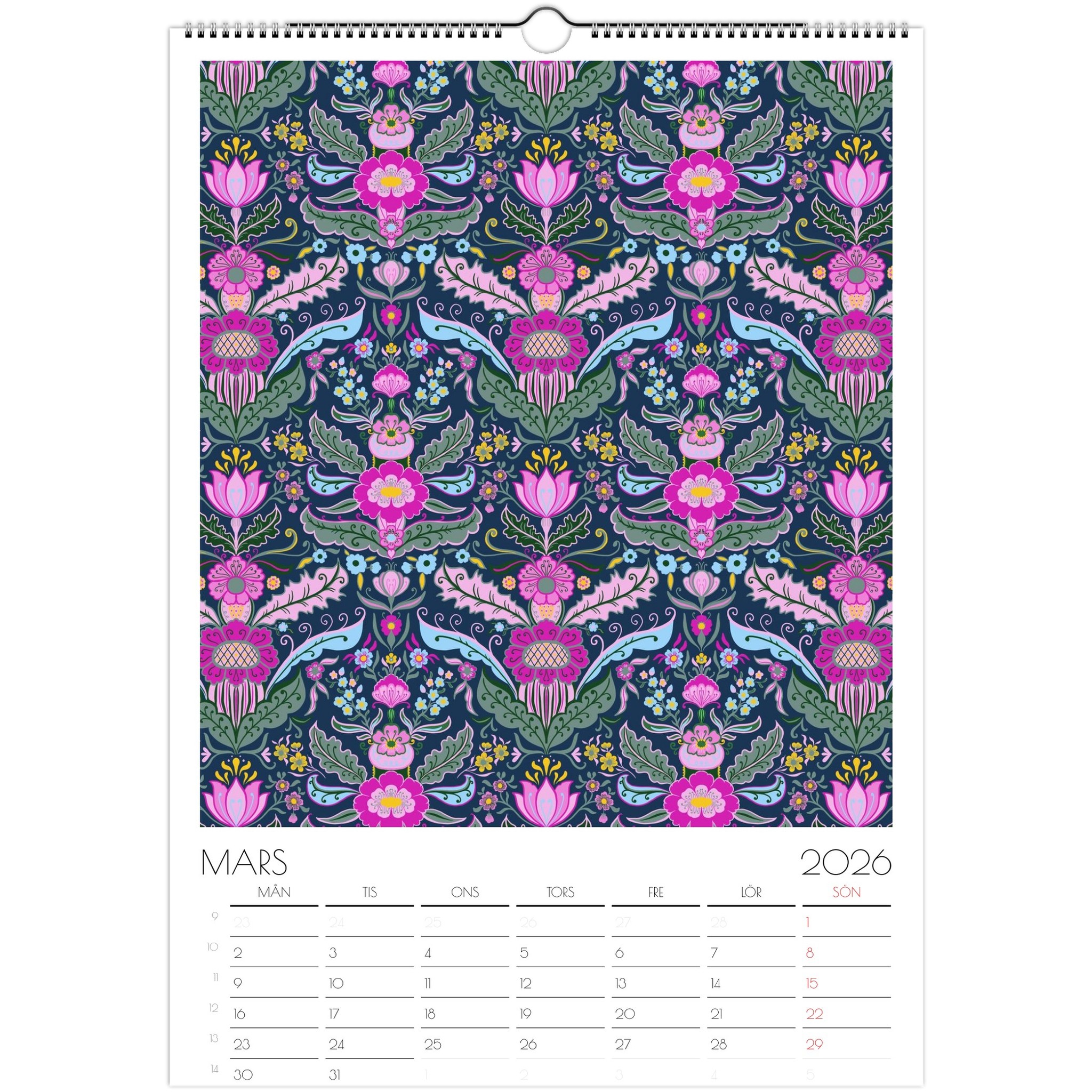 En väggkalender fylld med några av mina favoritmönster med kurbits, färg och dalakänsla. Varje månad bjuder på en ny illustration – handmålad med hjärta och rötter i folkkonst och natur.