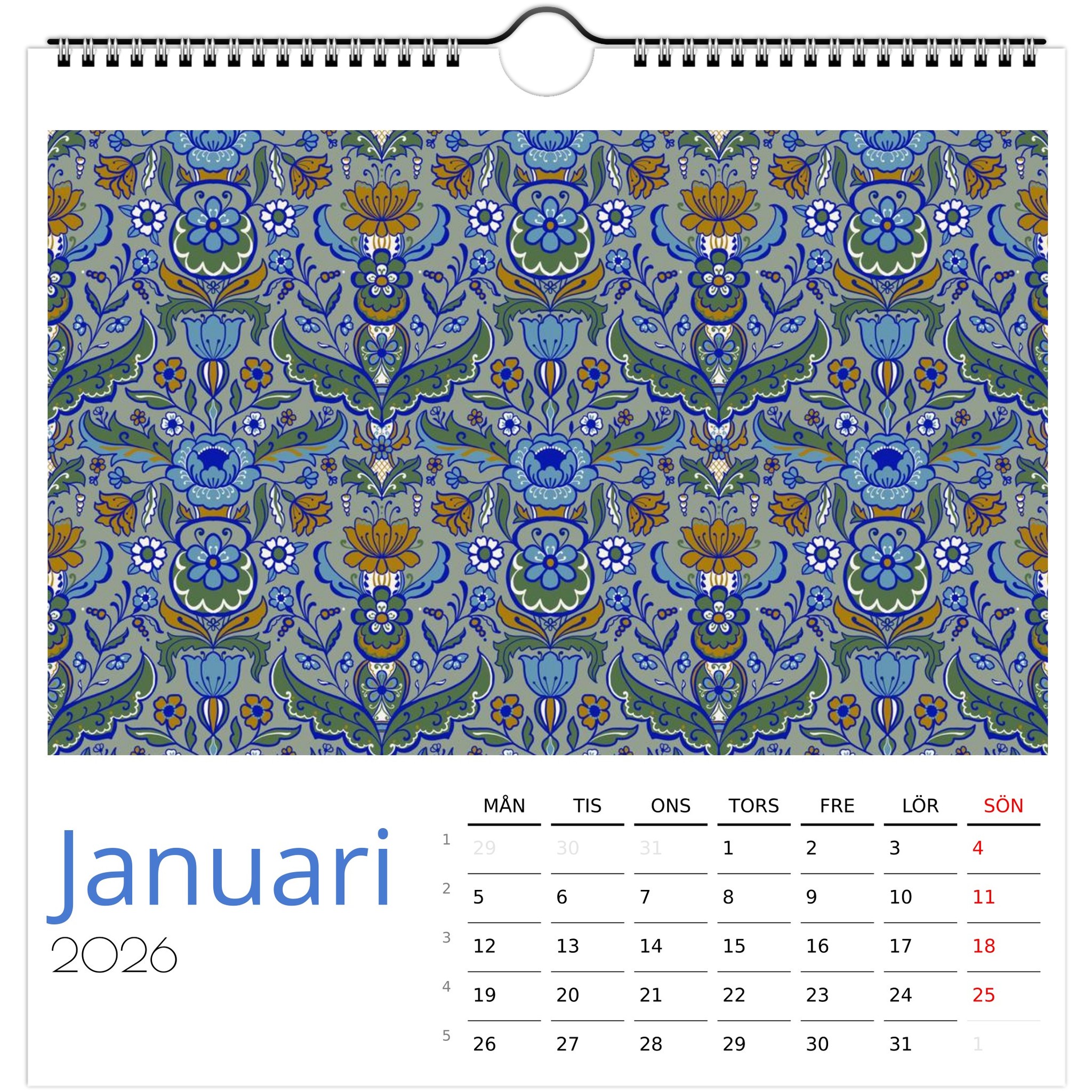 En väggkalender fylld med kurbitsmönster, färg och dalakänsla. Varje månad bjuder på en ny illustration – handmålad med hjärta och rötter i folkkonst och natur.